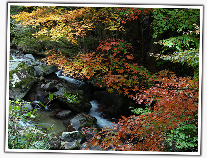 車で走っていても、あちこち色付いた木が目立ち始めたので井山渓谷へ行ってみました。
